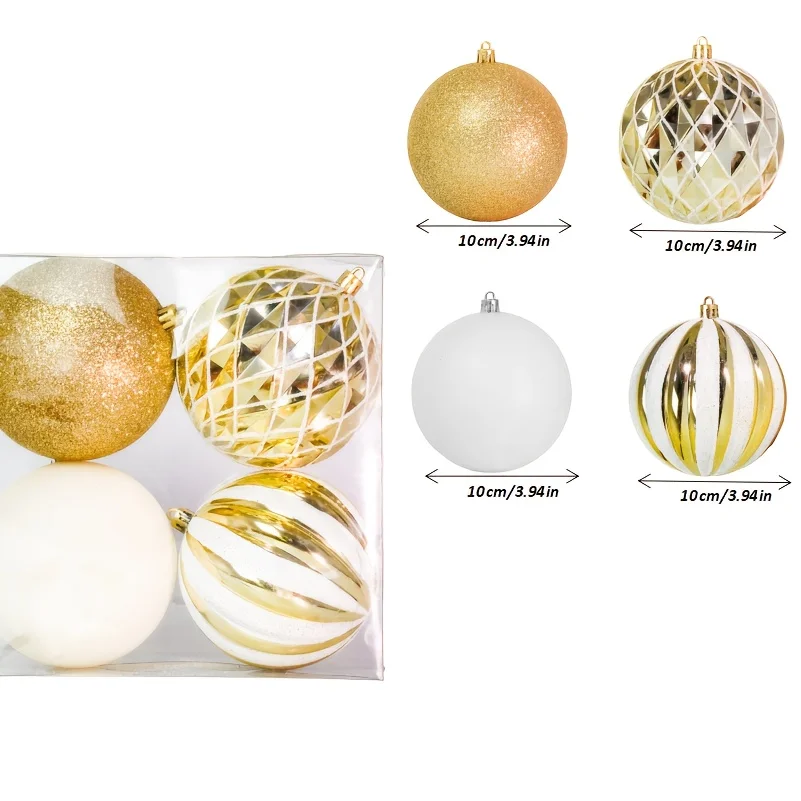 4PCS 10CM Christmas Ball Decoration Xmas Tree Pendent Ornaments for Home Decor Navidad New Year 2026 Party Supplies Accessory