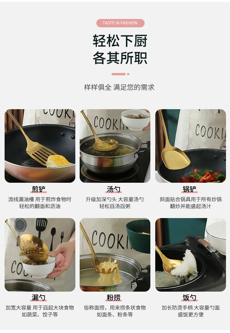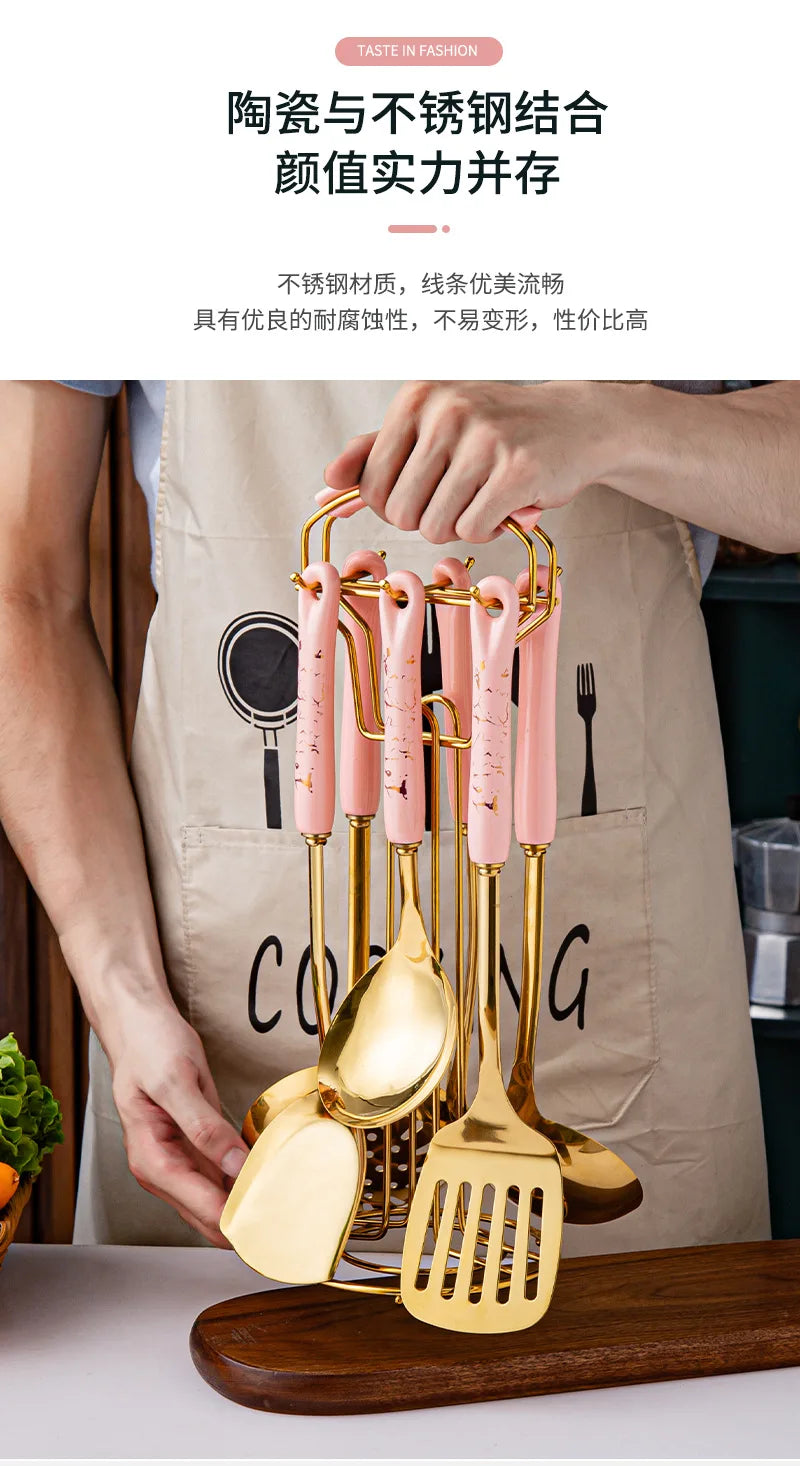 7pcs stainless steel spatula soup spoon kitchenware set cooking spatula kitchen supplies ceramic handle Nordic kitchen tools