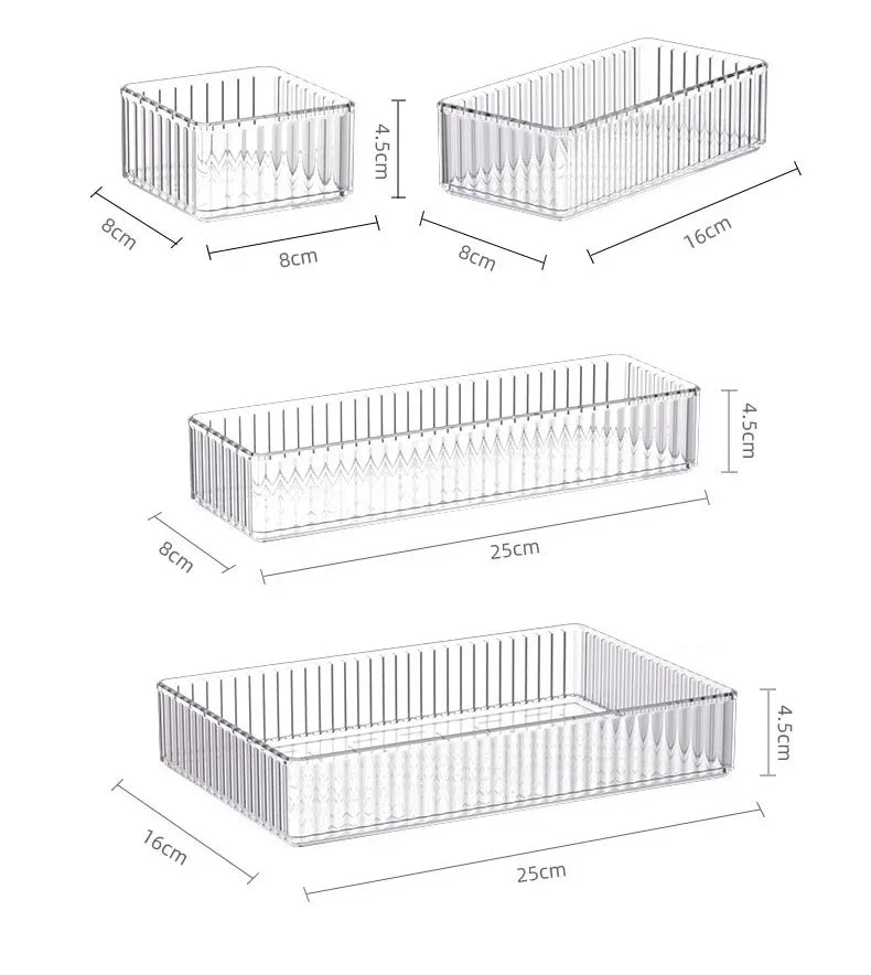 Unlimited Desk Drawer Organizers Set Plastic Bathroom Storage Makeup Organizer Clear Transparent Storage Box Bins Kitchen Gadget